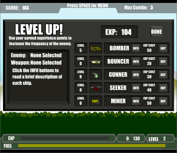 비행기를 많이 햎치우면 경험치를 획득하여 레벨업을 합니다.