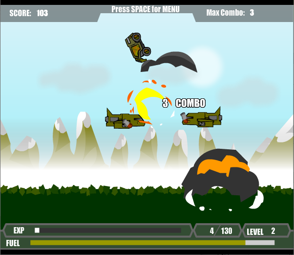 폭탄의 충격으로 튕겨 오르면 이때부터 상대 비행기에 박치기를 합니다.