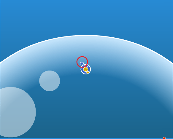 현재 있는 곳도 커다란 거품속이고 다른 거품으로 이동한후 작은 거품들을 공격하면 됩니다.