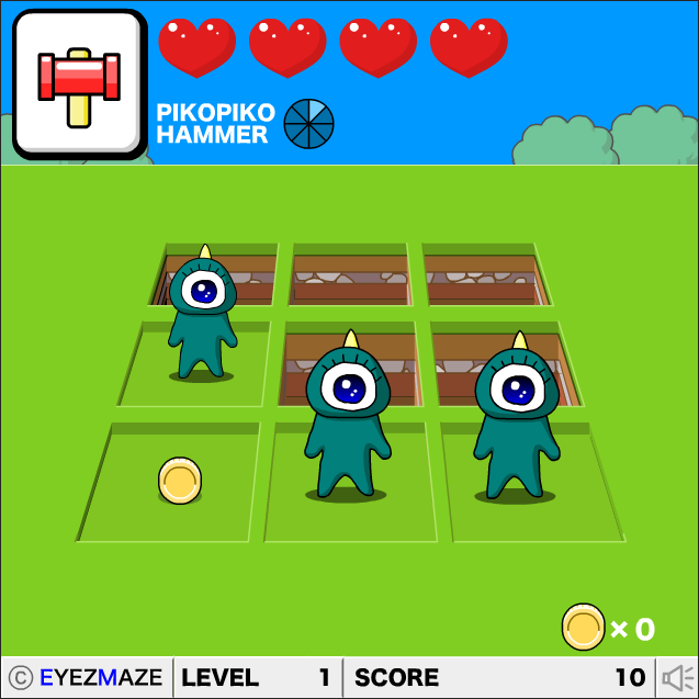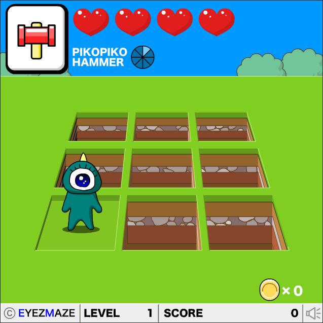 톤티(tontie) 도깨비방망이 두더지잡기게임의 게임화면을 살펴보죠.