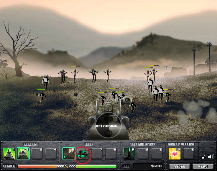 이 게임은 연발 기관총으로 좀비를 해치웁니다.
