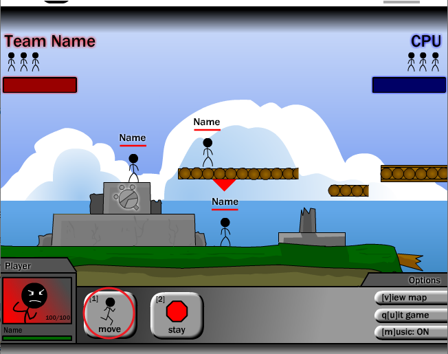 먼저 3명중 한명씩 선택이 되며 1을 눌러 이동을 먼저 합니다.