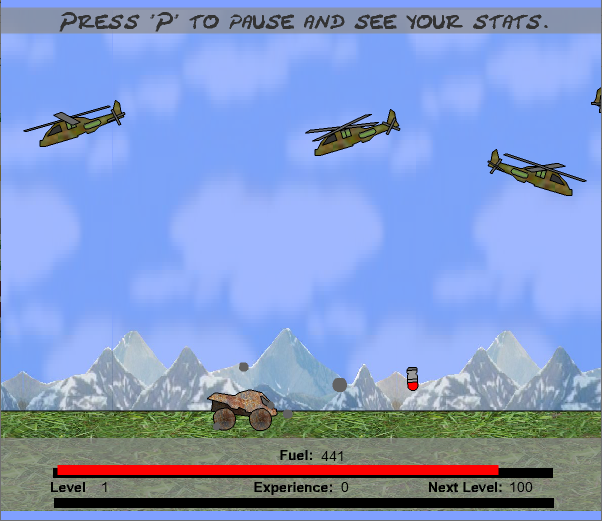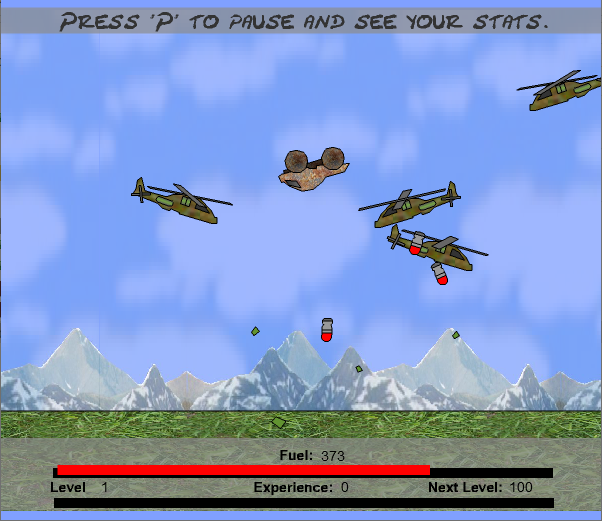 맞지 않고 가만히 있으면 연료가 떨어져 게임오버가 됩니다.