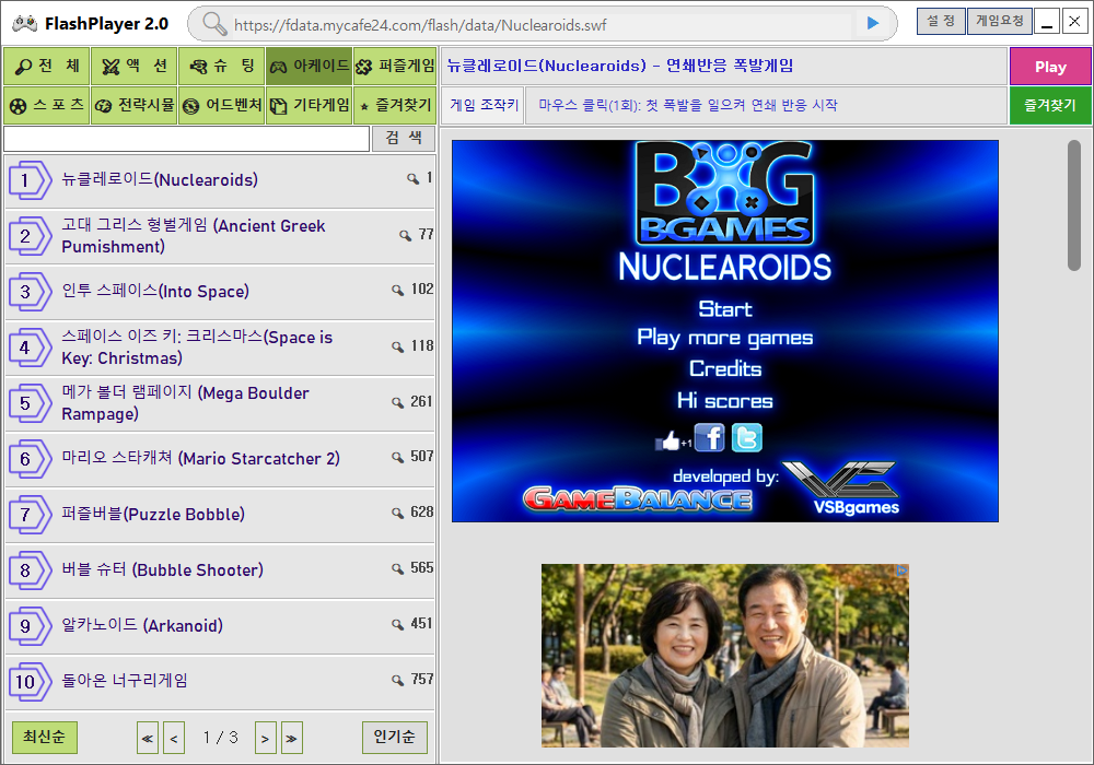 연쇄 폭발로 목표 개수 터뜨리는 아케이드 뉴클레로이드(Nuclearoids) - 고전 플래시게임 즐기기