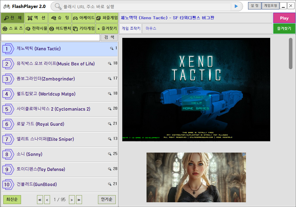 - 다양한 장르의 고전 플래시게임 제공