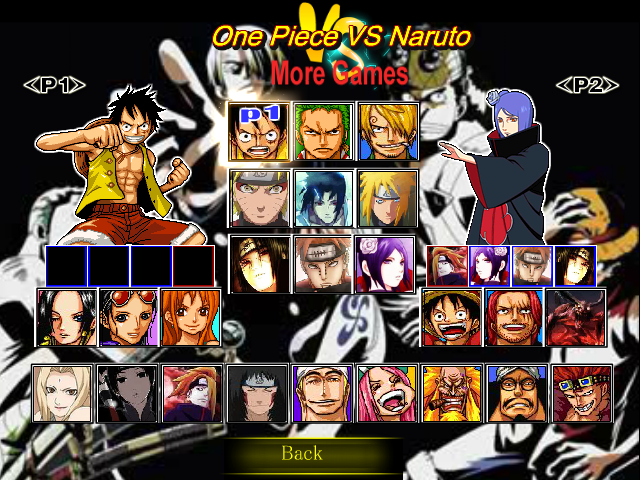 원피스 대 나루토(One Piece VS Naruto)는 윈피스와 나루토의 캐릭터 주인공으로 액션 대전을 펼치는 격투 게임입니다.