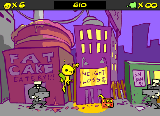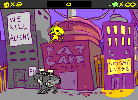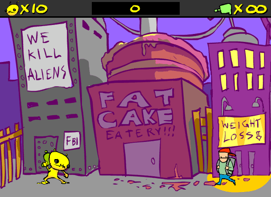 아빠와나(Dad n Me) 외계인편 총쏘기 액션게임의 게임화면입니다.