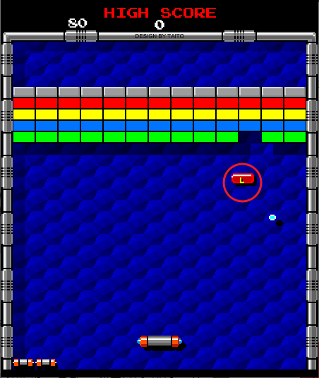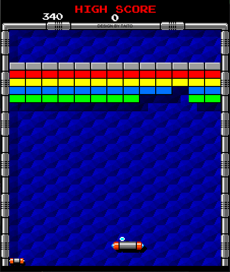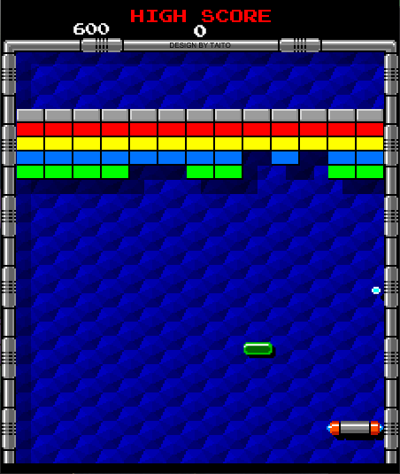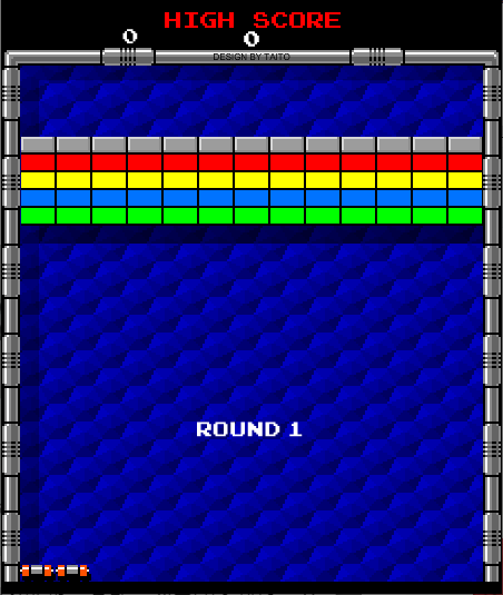 알카노이드 (Arkanoid) 벽돌깨기 게임의 게임화면을 살펴보죠.