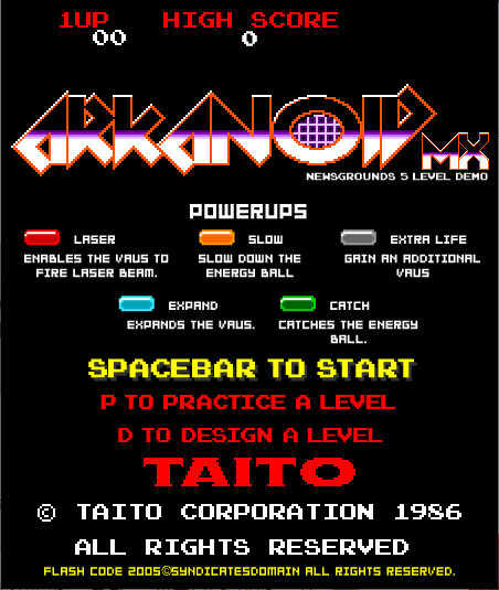 알카노이드 (Arkanoid) 벽돌깨기 게임은 플래시플레이어에서 게임할수 있습니다.