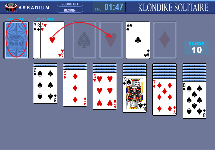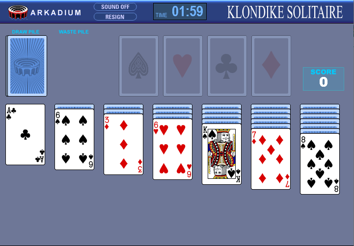 클론다이크 솔리테어(Klondike Solitaire) 카드게임은 플래시플레이어에서 게임할수 있습니다.