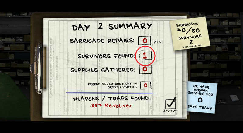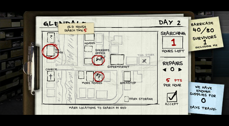 스테이지가 끝나면 획득한 포인트로 구역에 할당을 하면 생존자 검색과 무기수색을 합니다.