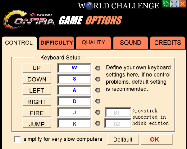 콘트라(Contra 25th Anniversary)의 게임 조정키 안내입니다.