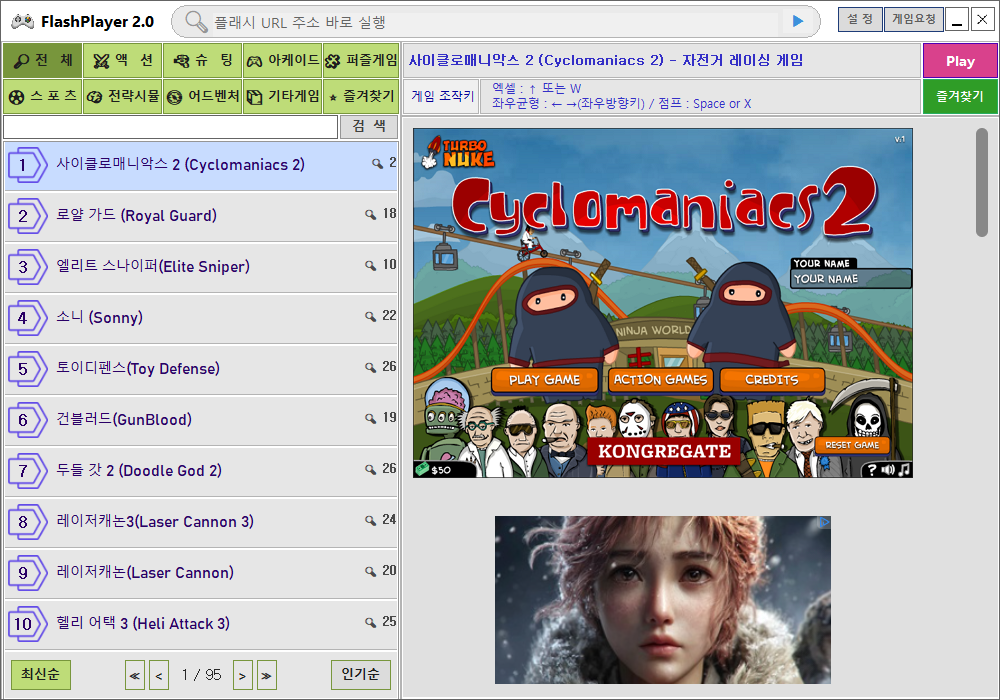 - 다양한 장르의 고전 플래시게임 제공