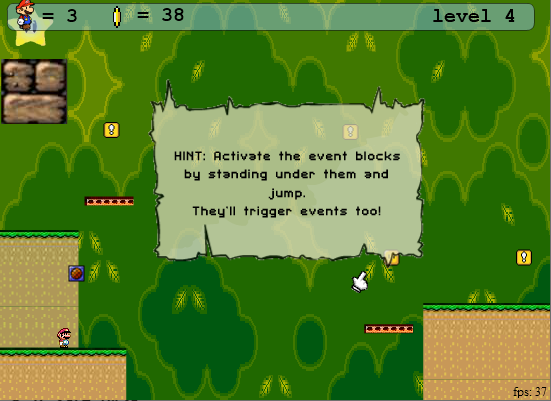 점프로 블럭을 누르면 뭔가 설명이 계속 나옵니다.