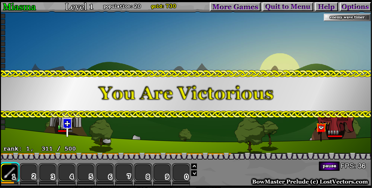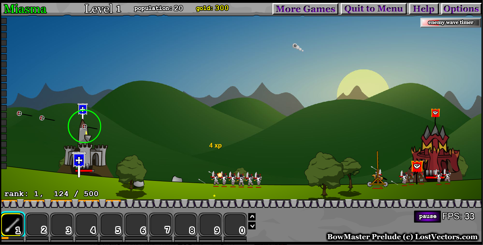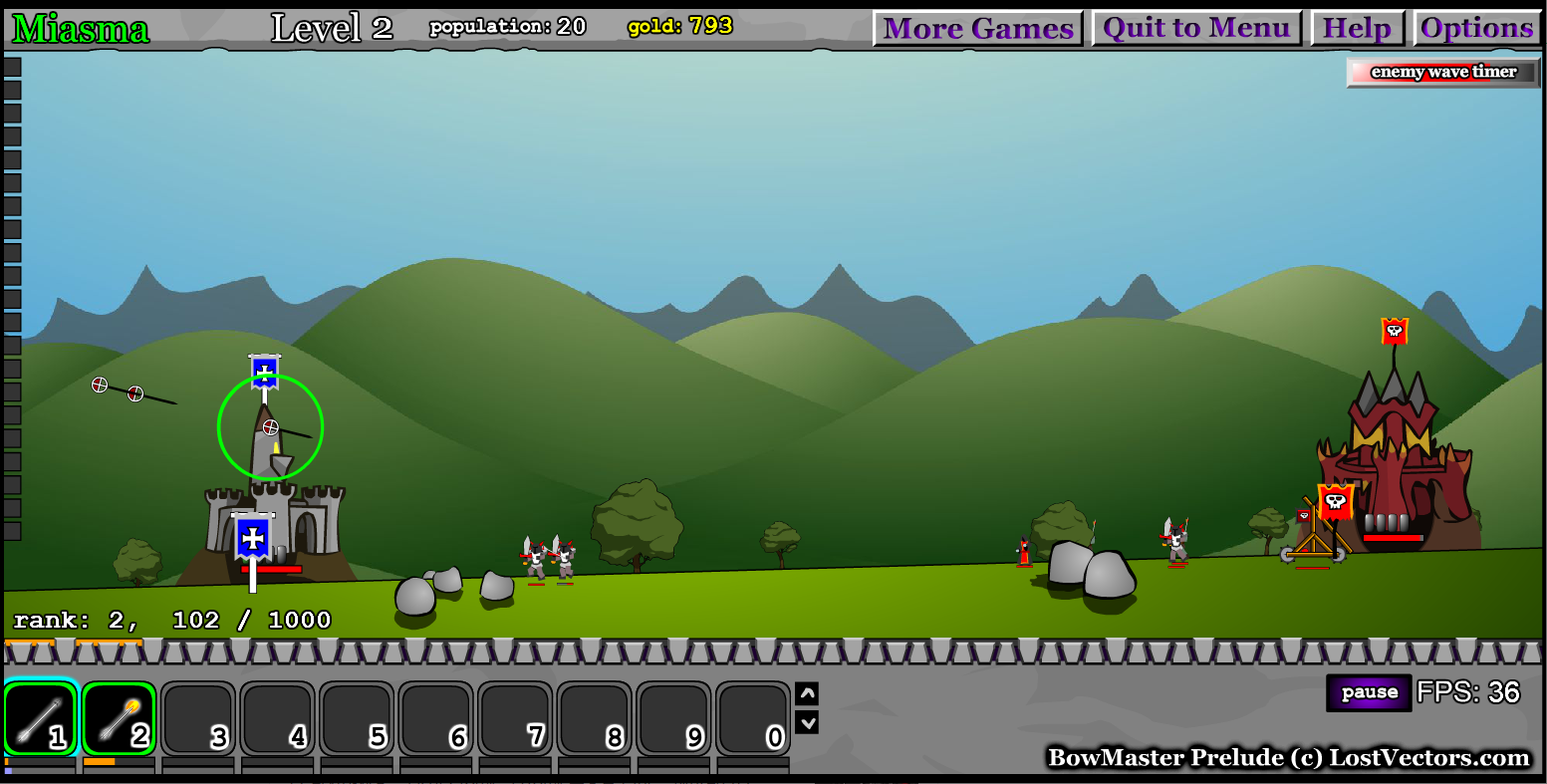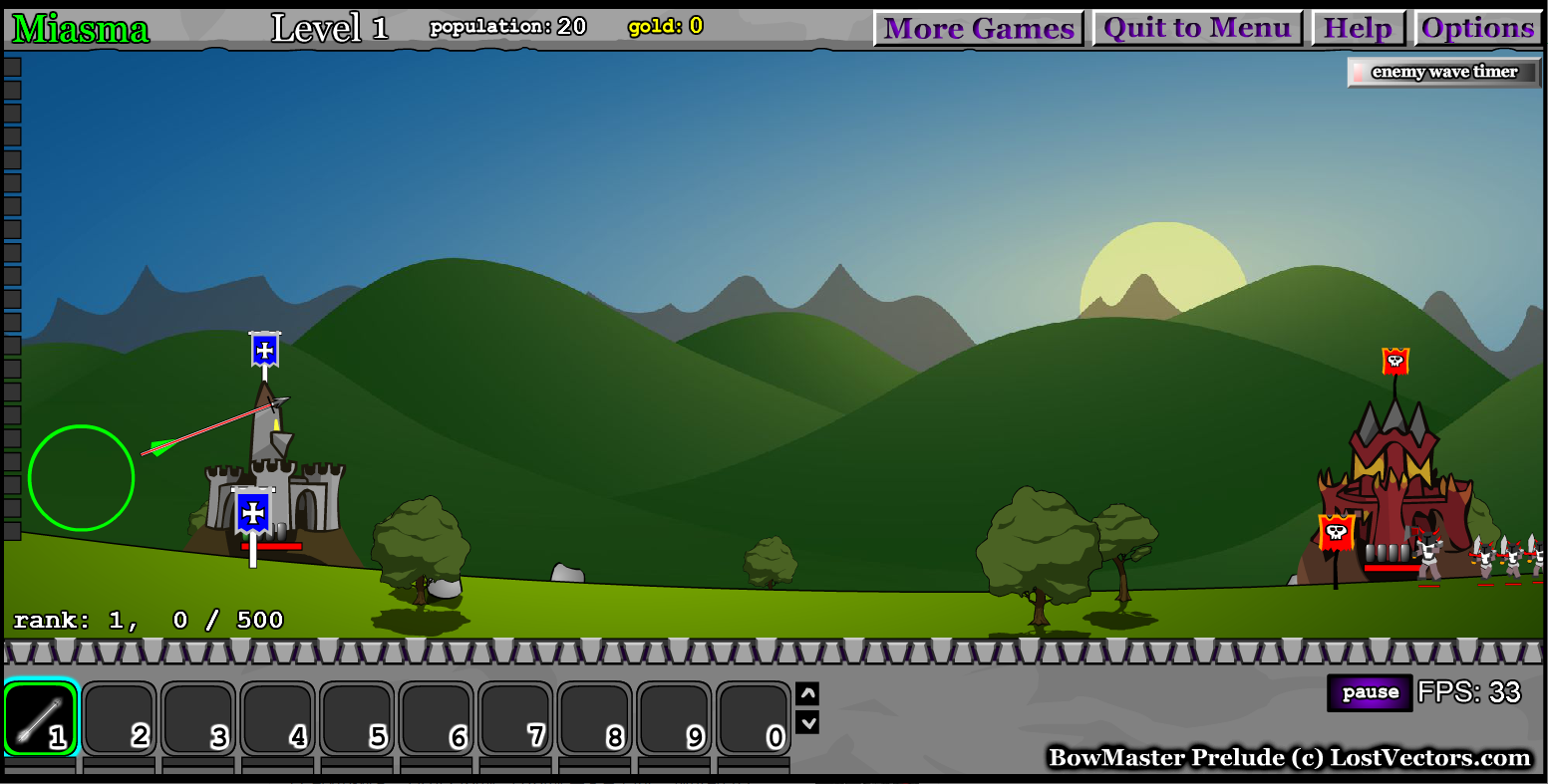 적의 침입의 숫자가 많아서 부지런히 활을쏴야 합니다.