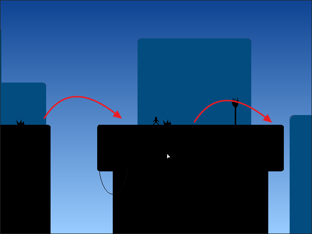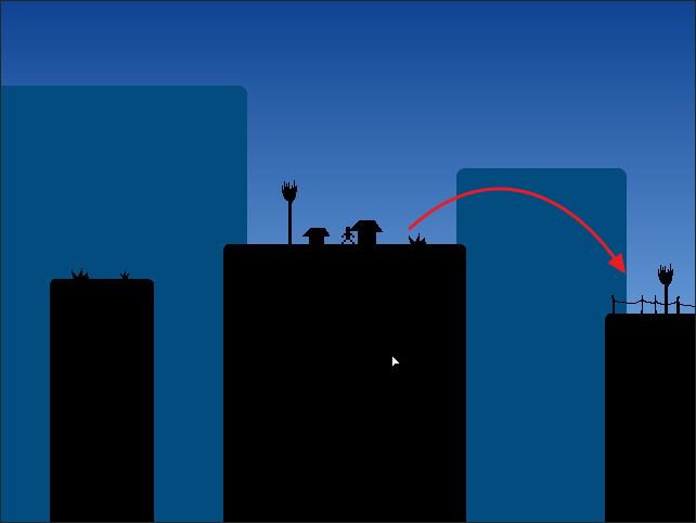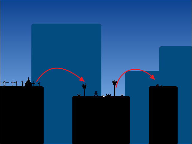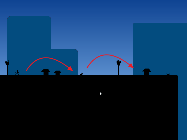 앞으로 가는 것이 없이 점프의 길이로만 앞으로 가야 합니다.