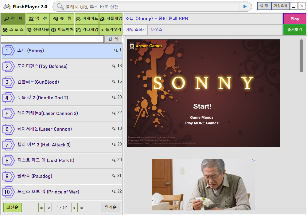 - 다양한 장르의 고전 플래시게임 제공